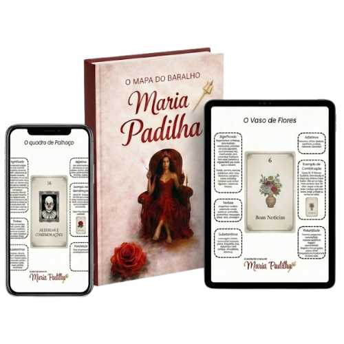 Ainda hoje, você vai começar a Estudar usando o Mapa do Baralho de Maria Padilha, um material completo, ilustrado e organizado para te ajudar a interpretar as cartas, abrir sua mesa com mais segurança e jogar com mais firmeza e intuição espiritual. Chega de se sentir insegura na leitura.